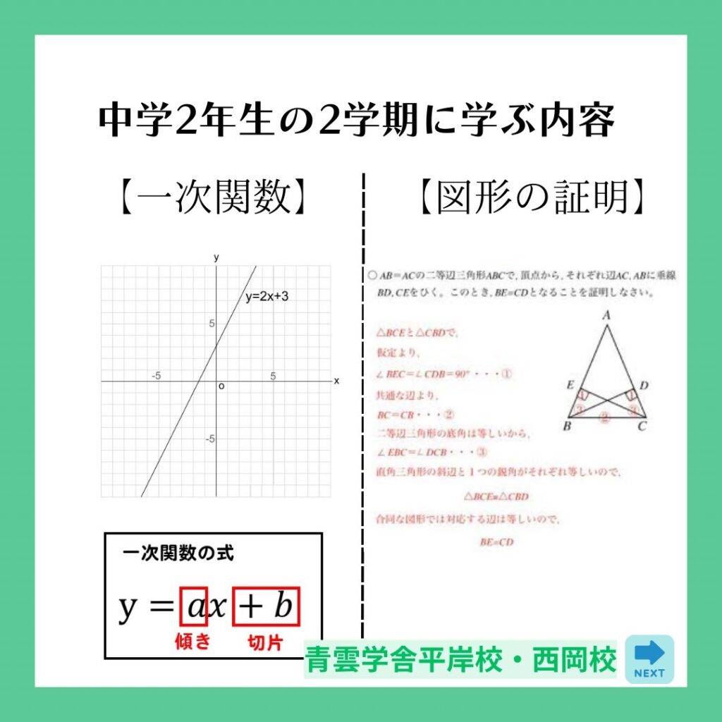 この時期に学ぶ 一次関数 と 図形の証明 が、
